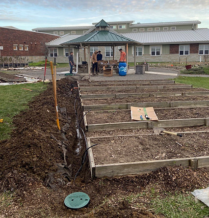 EWM members designed and implemented a gravity-based drip water irrigation system for Grove City Middle School. This sustainable system collects rainwater, distributing it to four grow beds supplying fresh produce to the community. Additionally, EWM is building compost systems that gather compost from the community and college cafeterias, enriching Grove City Middle School's community garden with nutrient-rich compost.